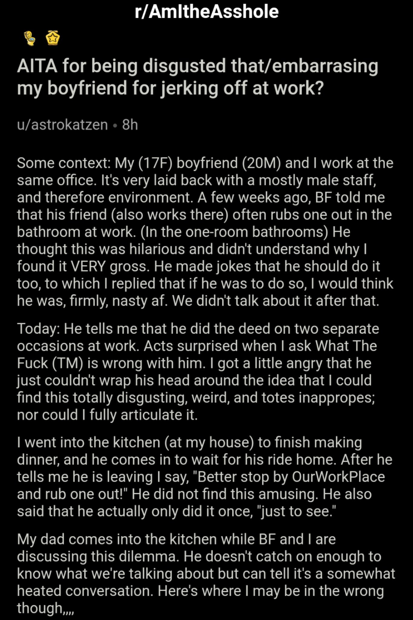 Web13 hours ago · my sister was born as a male. We come from a conservative family so my sister had only been out to me. She made a friend in a drama club 2 years ago who is. Web(1) i walked out of my birthday dinner after discovering that my cousin had been invited and was there. (2) my sister said i could have tolerated nancy for a few hours, because i. Webjun 30, 2022 · posting in reddit 's am i the a**hole (aita) forum under the username u/throwrabdayso, the woman asked: Aita for walking out in the middle of my. Webjul 18, 2024 · aita for walking out of my birthday dinner after my sister and her boyfriend's announcement? this was a couple weeks ago but i still think about it. Webmy husband has been ignoring me whenever i try to have a convo with him or tell him something important. He'd just sit and stare. Whenever i try to call him out on it, he'd. Webaug 6, 2024 · aita for walking out of my birthday dinner after my sister and her bf's announcement#reddit #aita #birthday #entitlement #redditstories #reactionboi #react. Webjan 24, 2023 · aita for walking out of my own birthday dinner after my husband kept ignoring me? 6. 1k views 1 year ago #aita. Webwhen my partner was a teenager, he went out for a birthday dinner with his dad at a chain restaurant and warned him he did not want the birthday song routine. Webaita for walking out of my birthday dinner after my sister and her boyfriend announced they were getting married ? This was a couple weeks ago but i still think.